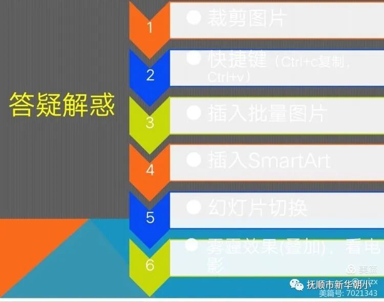 在答疑解惑環(huán)節(jié),金笛樹老師將老師們提出的PPT插入批量圖片方法,插入SMARTART,幻燈片中帶有霧霾的效果制作方法等進(jìn)行了介紹,解決了老師們?cè)谥谱髡n件時(shí)出現(xiàn)的疑惑。