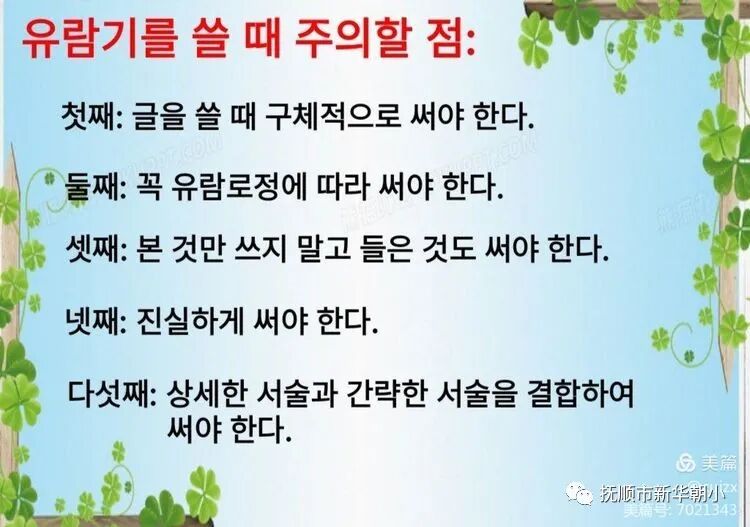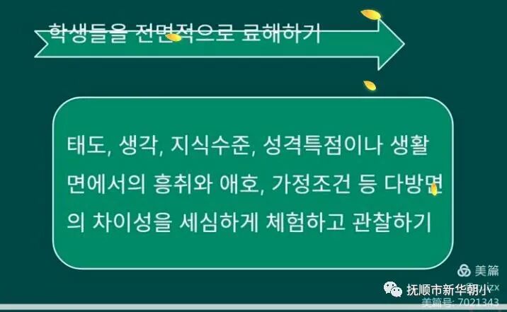李英實(shí)老師把一~六年級(jí)整個(gè)朝鮮語(yǔ)文教材中出現(xiàn)的作文都一一做了整理并進(jìn)行分類,讓老師們系統(tǒng)地了解了整個(gè)小學(xué)階段的作文內(nèi)容及各年級(jí)作文教學(xué)中所要達(dá)到的要求。