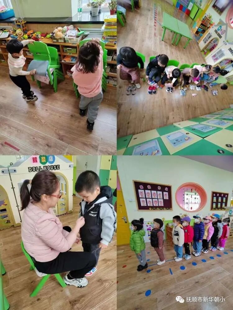 離園時間到,椅子歸位擺放好,獨(dú)自更換室外鞋,教師協(xié)助整理衣服,有序排隊(duì)準(zhǔn)備離園!